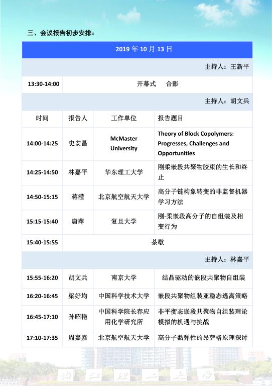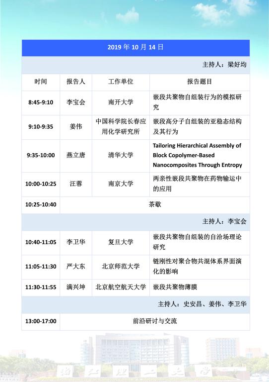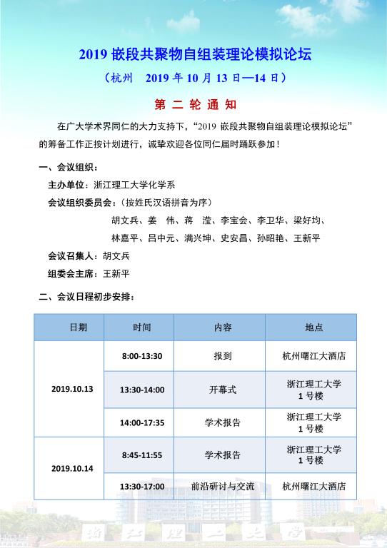 2019嵌段共聚物自組裝理論模擬論壇 第二輪通知
